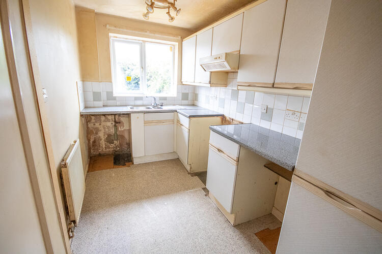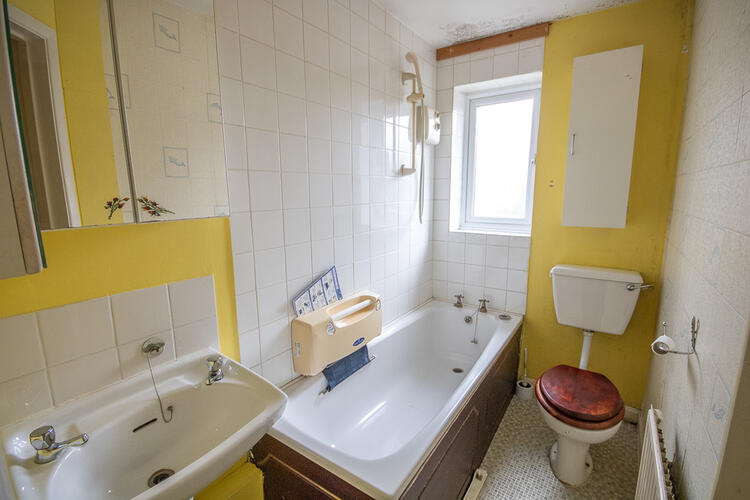 An extended two bedroomed end terrace bungalow situated at the head of a cul-de-sac and requiring a full scheme modernisation/improvement. The property benefits from a detached garage, driveway and gardens.