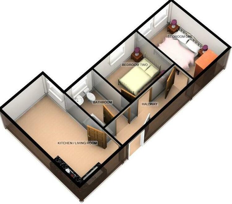 Secure communal hallway, reception hall, open plan lounge/kitchen/diner, bedroom one, bedroom two and bathroom.