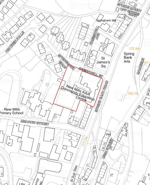 A former adult community education centre located along Spring Bank Road in New Mills, Derbyshire.