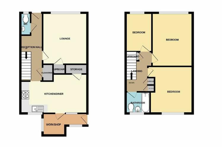 In brief, to the ground floor the property comprises, an entrance hallway, downstairs WC, open plan kitchen/dining space and workshop to the rear. To the first floor the landing leads to three generous sized bedrooms and the family bathroom suite. To the front, there is a small garden with off street parking via a driveway and to the rear, a large turfed rear garden backing onto the canal.