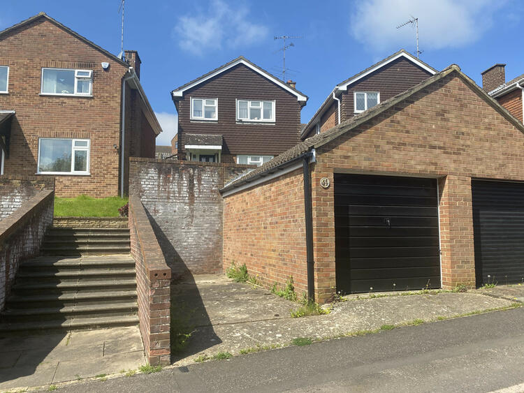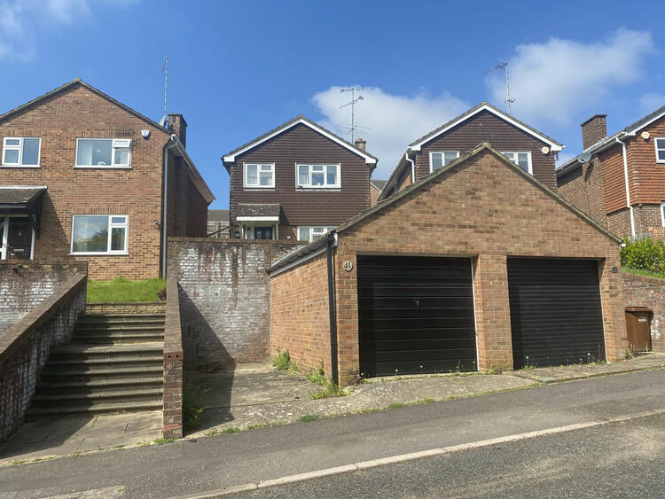 There is an elevated open plan garden at the front and a steep and stepped lawned garden at the rear. Single garage.