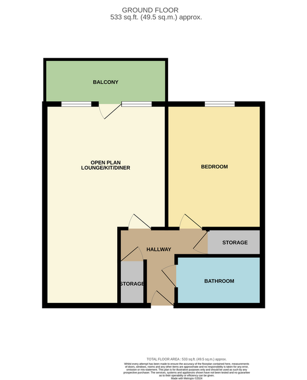 The property has a double bedroom, bathroom, an open plan kitchen/living/dining area which accesses a balcony.