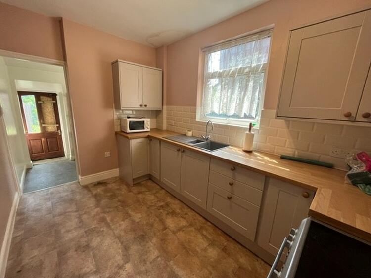 With a modern range of base and wall units, sink and work tops, space for appliances and window to side aspect.