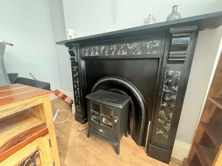 With radiator, original period fireplace, laminate floor and window to front.
