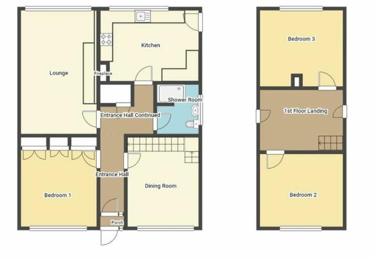 The property briefly comprises an entrance porch and entrance hallway, master bedroom with fitted wardrobes, spacious lounge, kitchen/diner, shower room and dining room with stairs leading to the first floor. To the first floor there is a large landing with storage on either side which leads to two further double bedrooms. To the front there is a small garden with off-street parking for two vehicles and to the rear is a large turfed garden with fruit bearing trees and storage sheds.