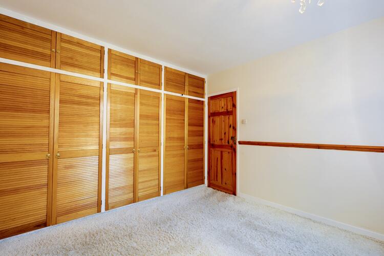 uPVC double glazed window overlooking the front, radiator, fitted wardrobes, carpeted flooring, painted plaster ceiling and ceiling light.