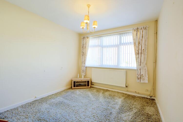 uPVC double glazed window overlooking the front, carpeted flooring, radiator, painted plaster ceiling and ceiling light.