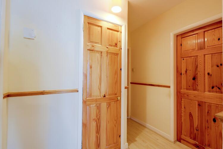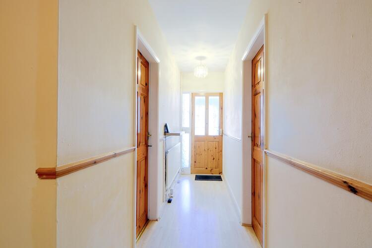 uPVC double glazed front door, carpeted flooring, painted plaster ceiling and ceiling light.