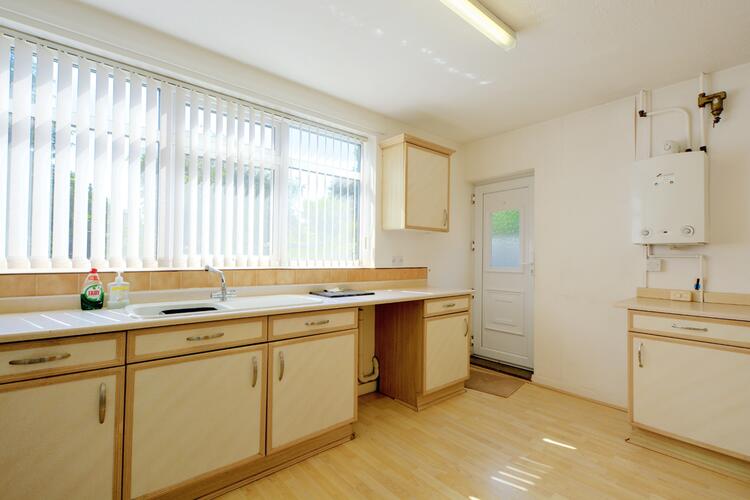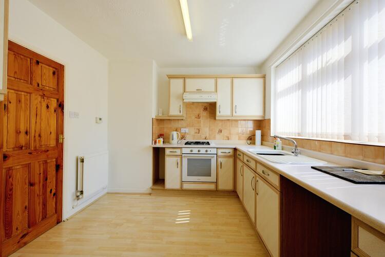 uPVC double glazed door leading to the rear garden, double glazed window overlooking the rear garden, laminate flooring, space for washing machine, integrated electric oven, integrated gas hob and overhead extractor fan, textured ceiling and ceiling light.