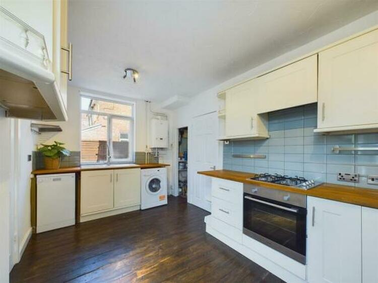 An extensive range of modern fitted cupboards and worktops, ideal central heating radiator, enamel sink unit with mixer taps, upvc window to the side and door to the rear. Fitted dishwasher and washing machine, built in logic oven, gas hob, wooden flooring and walk in pantry.