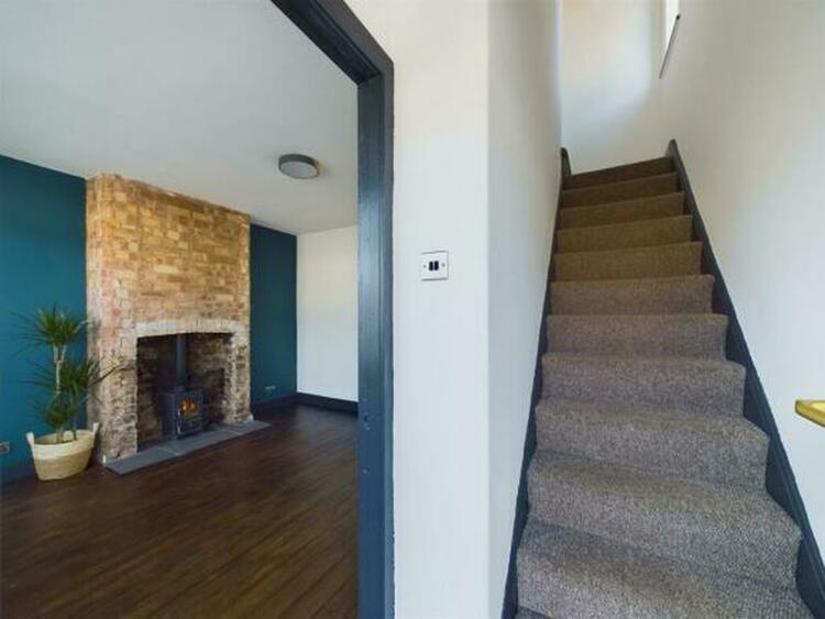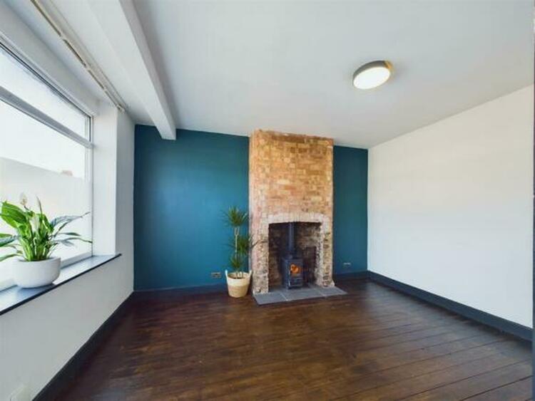 Upvc window to the front, feature brick chimney breast and log/ multi fuel burner. Wooden flooring and central heating radiator.