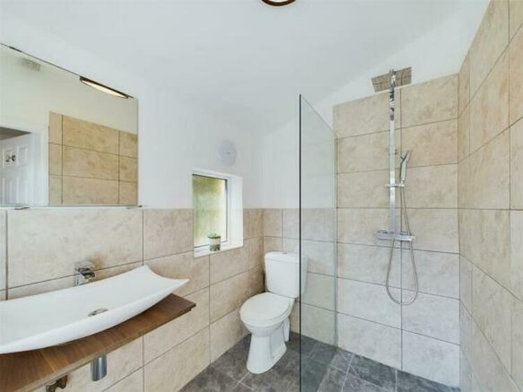 Upvc double glazed window to the side and rear, extractor fan, tiled floor and walls, low level wc, wash hand basin, separate shower cubicle with fitted shower.