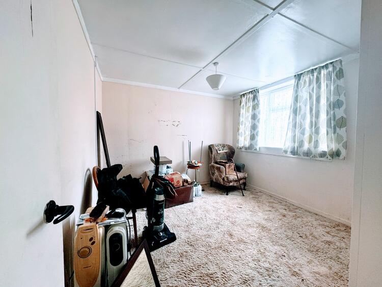A vacant freehold detached bungalow of non-standard construction on a double fronted plot of just under one acre (subject to survey).