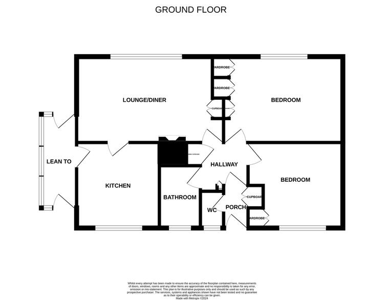 Hall, Cloakroom, Two Bedrooms, Bathroom, Sitting Room, Kitchen, Conservatory.
