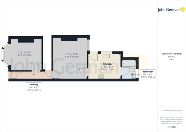 Reception hallway, lounge, kitchen, bedroom and bathroom.