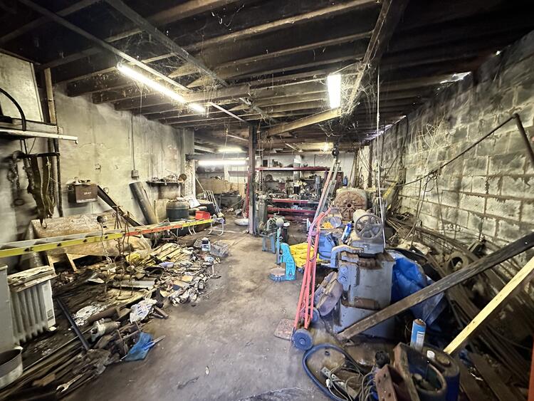 A former engineering metal spinning works with gated deep frontage approach/parking area.