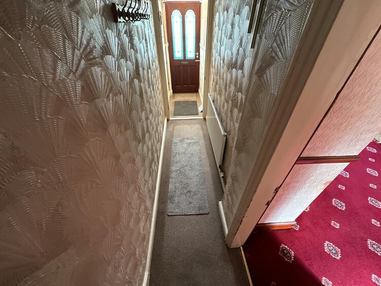 With radiator, understairs cupboard and door to rear.