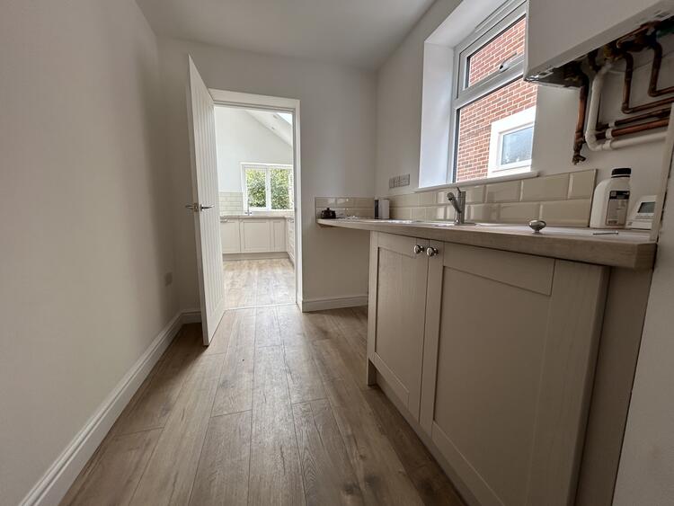 Worktop, sink with mixer tap, new combi boiler, space for washing machine and dryer.