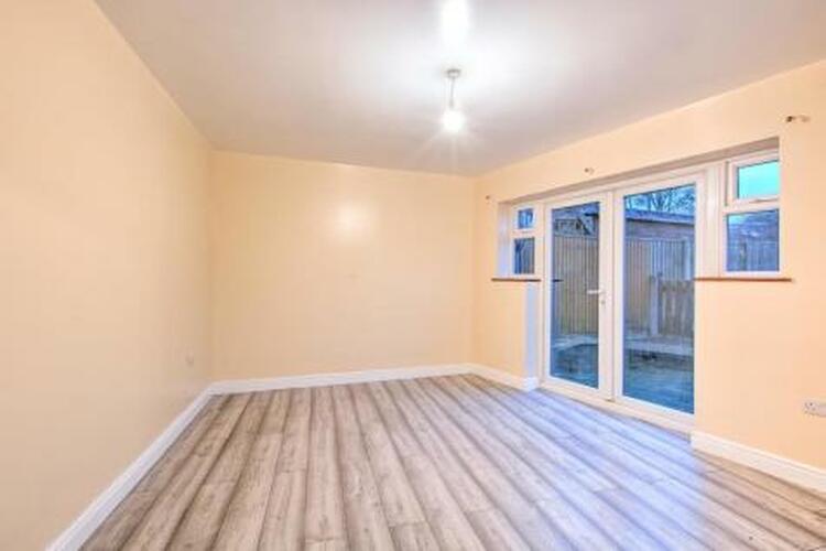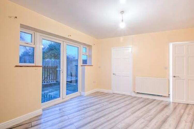 uPVC double glazed French doors leading to the enclosed garden at the rear with additional uPVC double glazed windows to the side, wall mounted radiator, laminate floor covering, panel door leading to en-suite shower room.