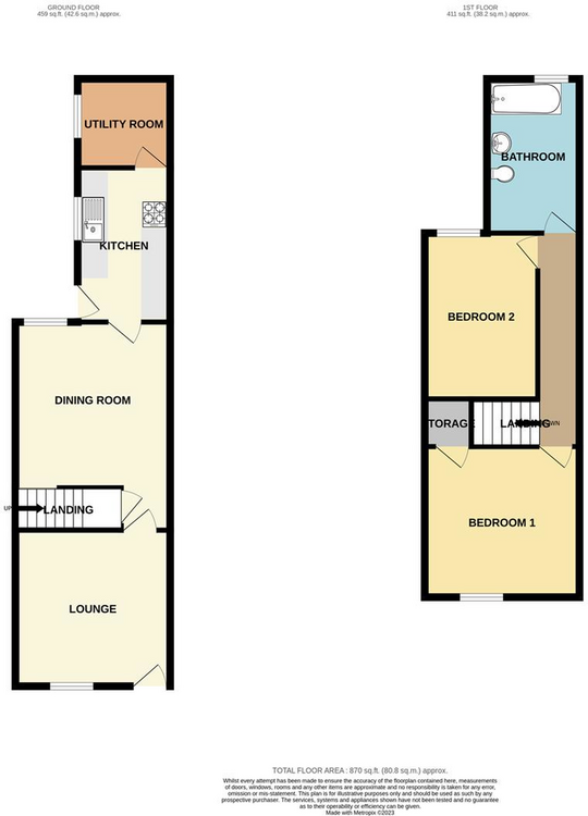 Comprising of a large front lounge, middle dining room, kitchen with utility downstairs. Upstairs has two double bedrooms and a family bathroom suitable for a four piece suite.