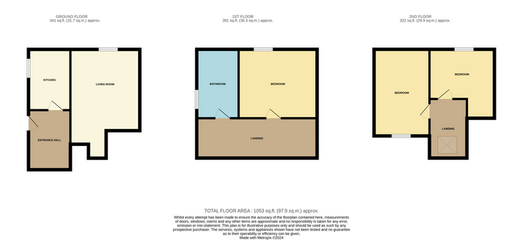 The ground floor has an entrance hall, living room and kitchen, to the first floor is the bathroom and a bedroom, the additional 2 bedrooms are located on the 2nd floor. We are advised that the property also has a parking space allocation.