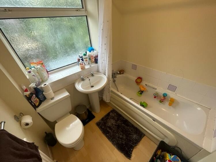 Having low flush w.c. wash hand basin and panel bath with shower attachment. Radiator and window to rear.