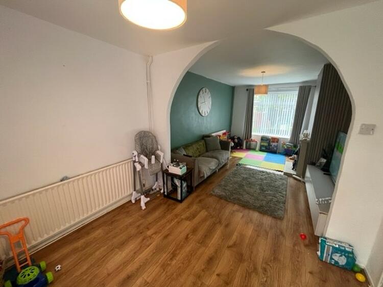 With radiator, laminate wood floor, window to front and being open plan to the lounge.
