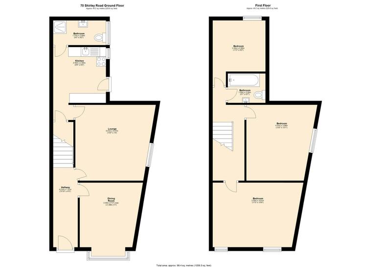 Hallway, lounge, dining room, kitchen and shower room.