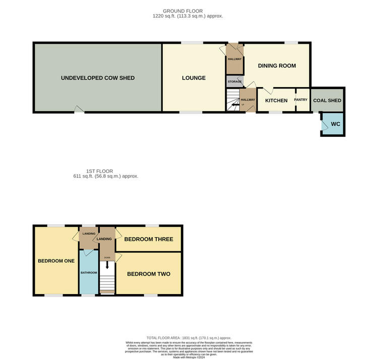 An attached undeveloped cow shed (9.5m x 5.7m) gives great potential to add more living space and bedrooms!