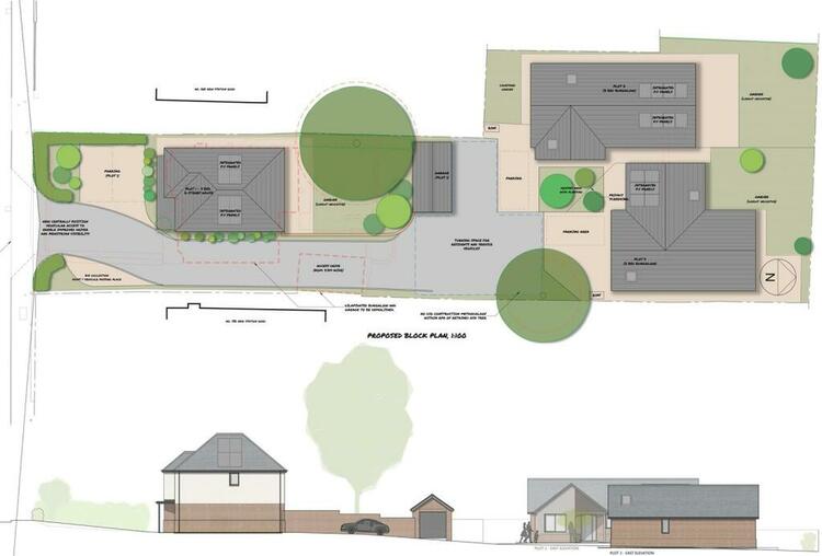 A freehold development site extending a 1/4 acres (or thereabouts) with full planning consent for 2 detached bungalows along with a detached house.