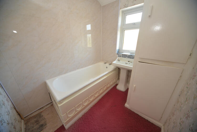 Has a panelled bath, pedestal hand wash basin and airing cupboard with the hot water tank and cold water header tank, there is an obscure window to the rear aspect and ceiling light point.