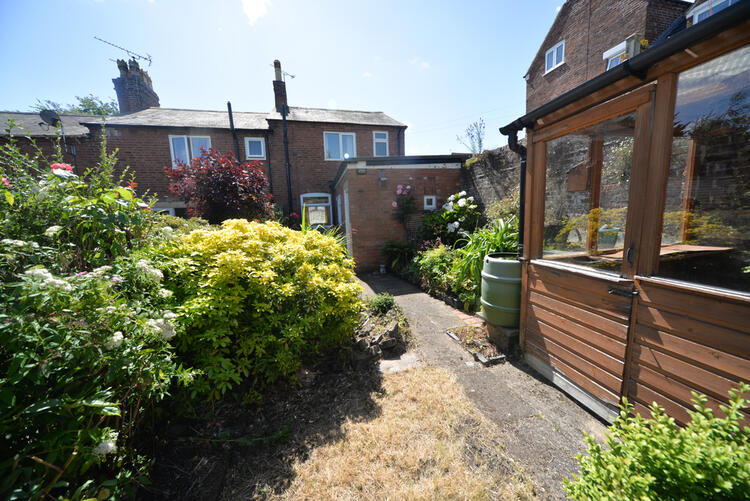 To the front of the property is a dwarf wall with wrought iron railings and wrought iron gate that border a pretty cottage style garden with a terracotta tiled path leading to the front door. To the rear of the property is an attractive cottage style garden with raised herbaceous beds full of mature planting, potting shed and small lawn. A pedestrian gate gives access across a neighbouring property and out through a shared entry.