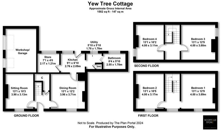 The character accommodation is arranged over floors and requires a scheme of improvement and upgrading throughout. Internally the double glazed living accommodation in brief comprises; entrance hall with staircase, two reception rooms, fitted kitchen with large walk-in-pantry, utility and bathroom. To the first there are two well proportioned double bedrooms and further two double bedrooms located in the attic.