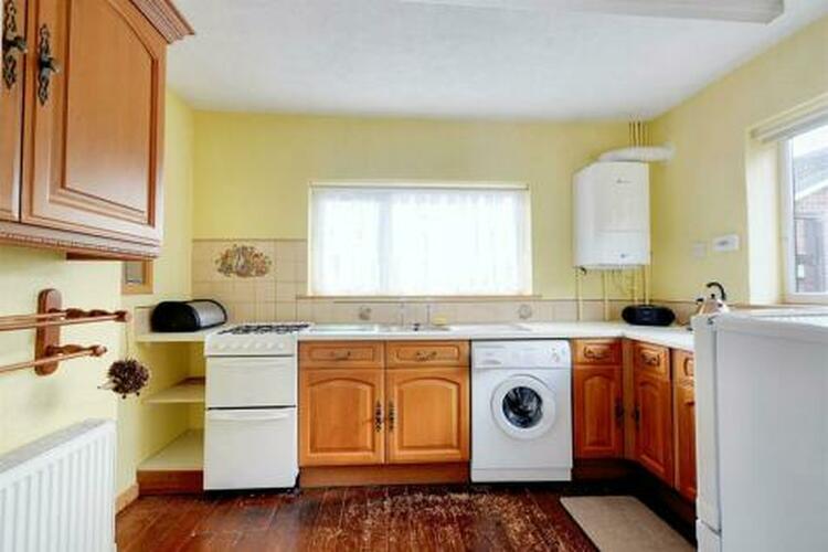 UPVC double glazed windows to the front and side elevations. Wooden flooring. Tiled splashbacks. Wall mounted radiator. Ceiling light point. Range of wall, base and drawer units incorporating worksurfaces above. Stainless steel sink and drainer unit with hot and cold taps above. Space and point for freestanding cooker. Space and plumbing for automatic washing machine. Space and point for freestanding fridge freezer.