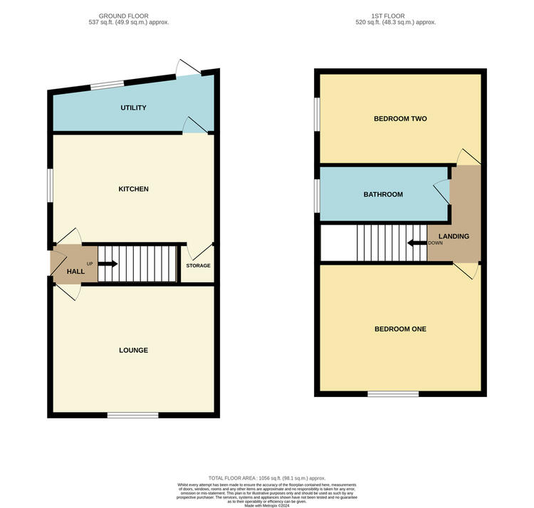 Comprising of entrance hallway, large front lounge, kitchen with separate utility room. Upstairs are two double bedrooms and family bathroom. Outside is a private easy to maintain courtyard garden area.