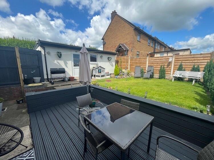 The house has a good size plot with gardens to the front. Ample driveway parking. Large detached garage with power and lighting and enclosed rear garden with lawn and decked seating area.