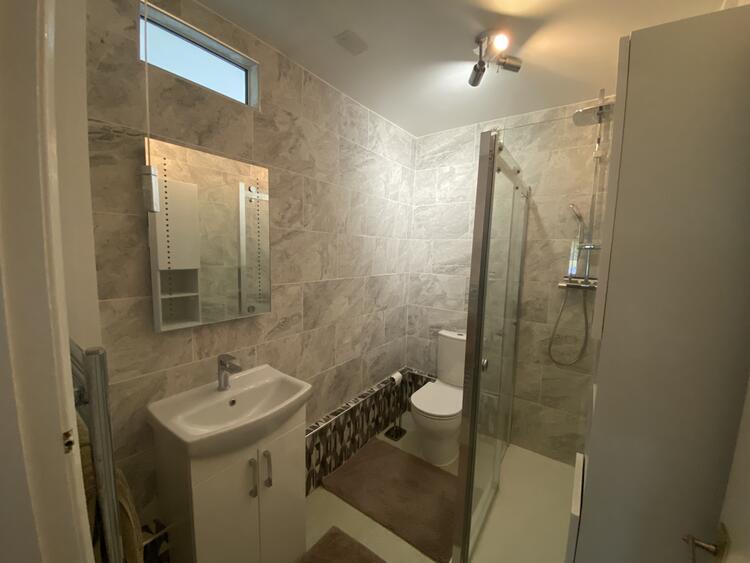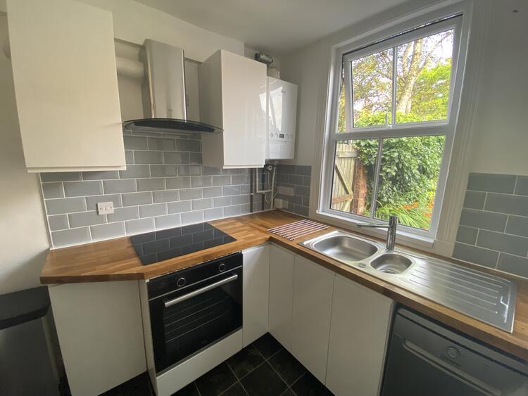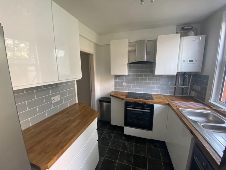 With integrated electric oven and hob, extractor, freestanding fridge/freezer and dishwasher. Also benefitting from white gloss units with built in handles, stainless steel bowl and a half sink, tiled splash back, tile effect vinyl flooring, uPVC double glazed window and radiator.