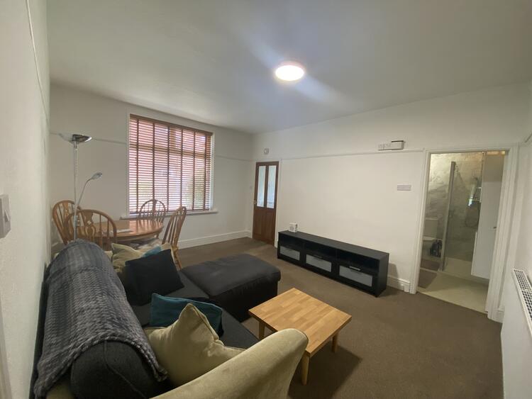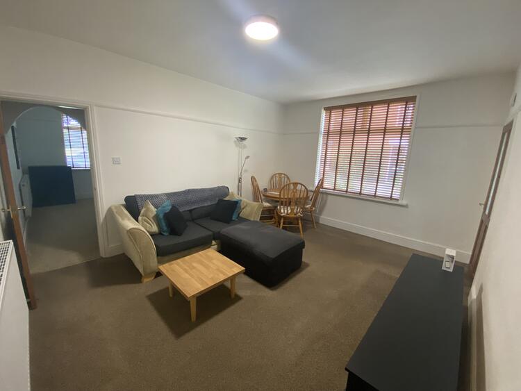 With wooden double glazed window, fitted carpet, wooden venetian blinds and radiator. Including TV stand, sofa, coffee table, dining table with four chairs and lamp.