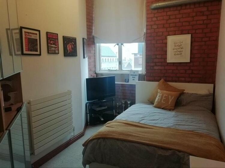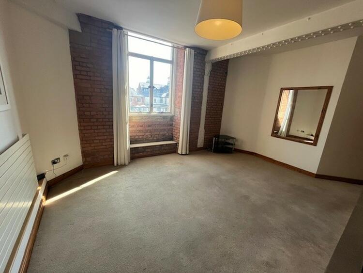 A bright and airy room with city views. A well equipped kitchen with base and wall units, integrated oven, hob and extractor. Built in washing machine and wine rack. Sink unit set into stainless steel work surfaces. Spacious lounge area with radiator, feature exposed brickwork and iron work. Large picture window and Juliet Balcony.