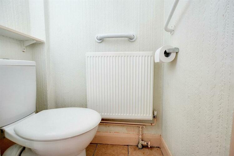 The kitchen area comprises a range of wall and base units with work surfacing and inset single bowl sink unit with single drainer. Gas cooker point, plumbing for washing machine. Wall mounted gas combination boiler (for central heating and hot water). Radiator, double glazed window and double glazed patio door to rear garden.