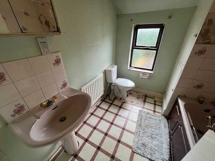 Comprising low flush WC wash hand basin and panel bath with shower over. Window to front aspect.