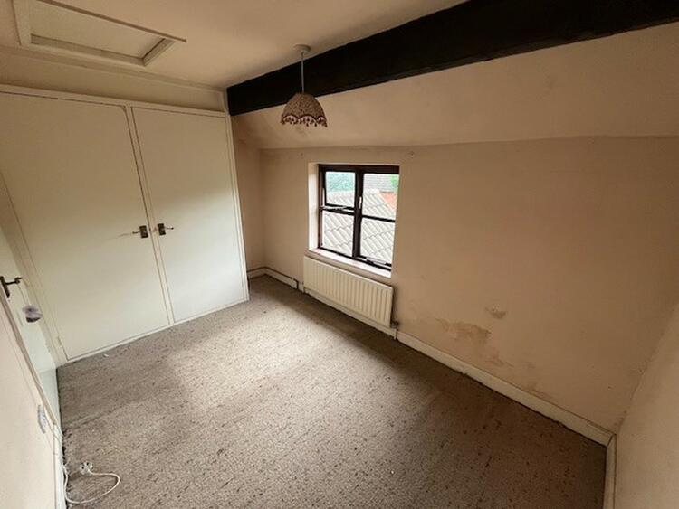 With radiator, beamed ceiling, brick fireplace with gas fire and window to front aspect.