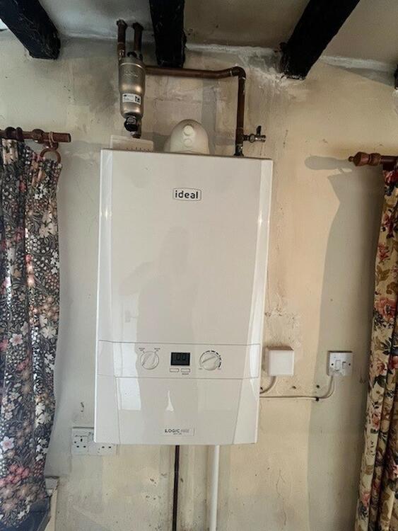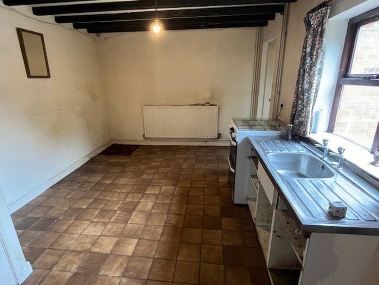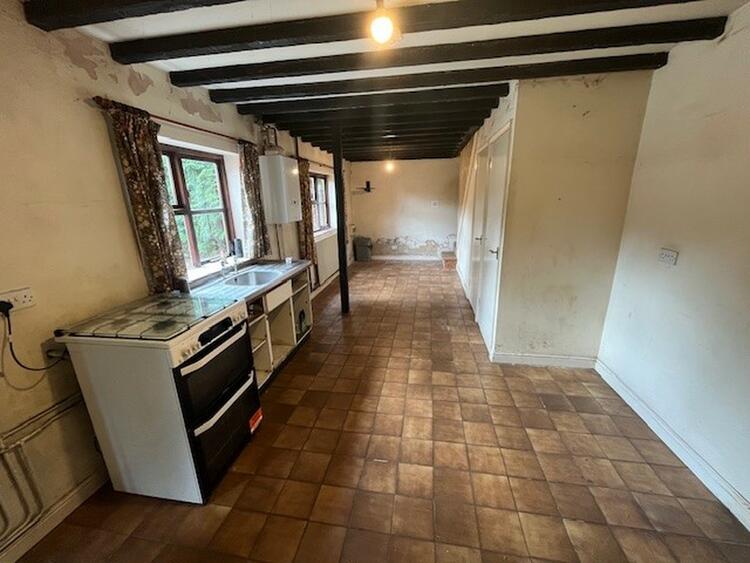 With basic units, sink, space for appliances, new and recently fitted wall mounted boiler, two windows to front aspect, two understairs cupboards and stairs leading to first floor.