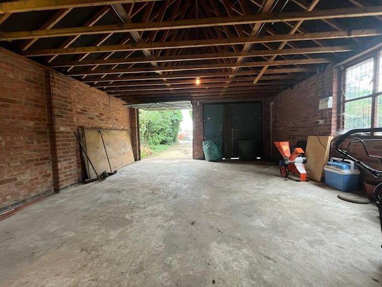 A brick built garage with pitched, tiled roof. With power, lighting and water supply. Two up and over doors and side personal door. Lapsed planning to convert into a detached bungalow. Further outline drawings done to show detached house with private driveway and two bed detached bungalow with private driveway.