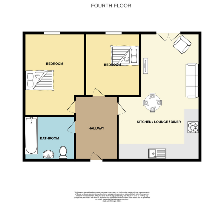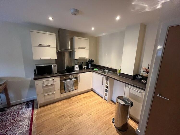 There is a well fitted, modern kitchen with base and wall units, sink and worktops and integrated oven, hob and hood. Electric radiator and French doors with Juliet balcony.