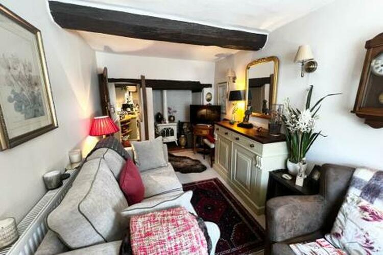Feature inglenook fireplace, tiled hearth and Multi-fuel stove fire (negotiable), Georgian style bay window to front with secondary glazing and window seat and storage beneath, original exposed beams and central heating radiator.