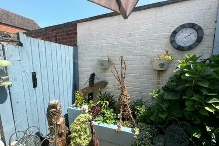 Accessed via the gate from the shared passageway, raised, well stocked flower and shrubbery beds.