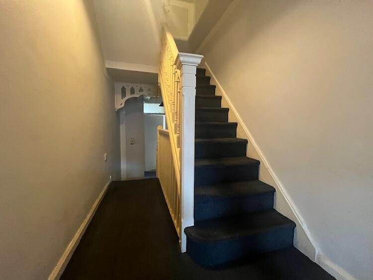 With original flooring, door to cellar, original cornicing and stairs leading to first floor.