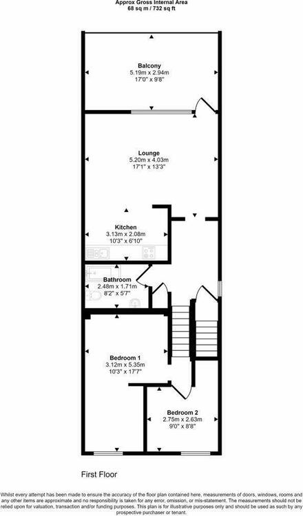 The property is accessed on the ground floor and leads up to the 1st floor which offers a very generously sized lounge/kitchen/dining area opening to a private balcony, additionally on the 1st floor is the bathroom. The second floor has 2 bedrooms.