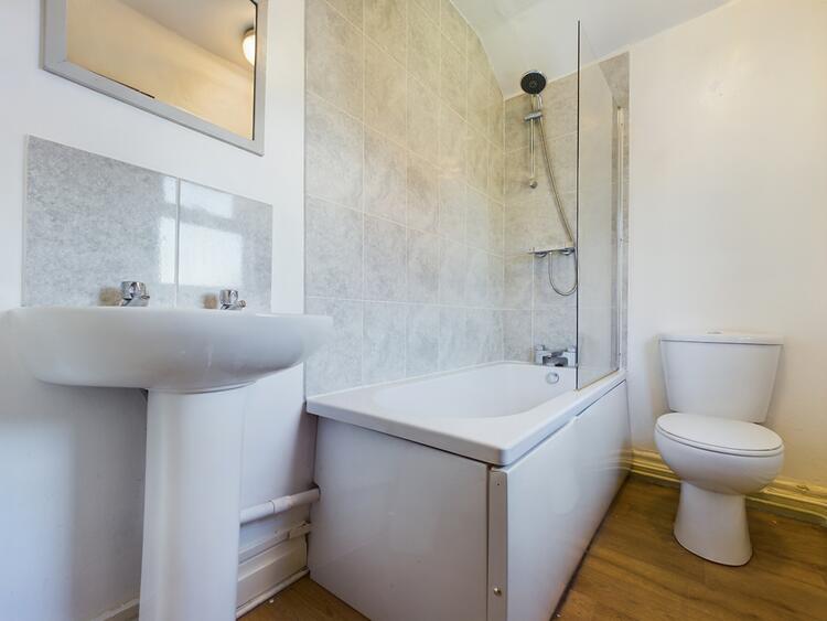 The first-floor landing provides access to both bedrooms, with the principal bedroom being positioned to the front of home and featuring an over stairwell built-in storage cupboard. Both bedrooms are well served by the Bathroom which has a three itemed white suite of panelled bath with tiling over and an exposed value mixer shower unit, pedestal wash hand basin and a low-level WC. Externally, there is an enclosed courtyard to rear which features artificial turfed sections and a brick built store to the foot of the garden. The property is connected to all mains services and GCH installed.
